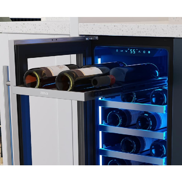 Zephyr PRW15C01CG Under Counter Refrigeration, 15 inch Width, ENERGY STAR Certified, 27 Wine Bottle Capacity, Stainless Steel colour