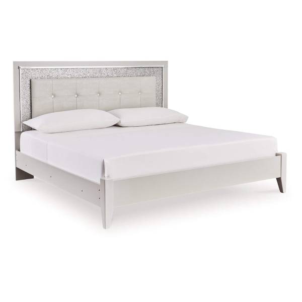 The Zyniden Full Upholstered Panel Bed from Teletime delivers a stunning blend of bold glamour and modern sophistication, making it a captivating centerpiece for your bedroom. The meticulously designed headboard features faux crystal tufted silver upholstery with an elegant faux alligator texture, accentuated by glitter inlays and faceted chrome-tone details. These luxurious touches combine to create a bed that exudes opulence and sophistication.