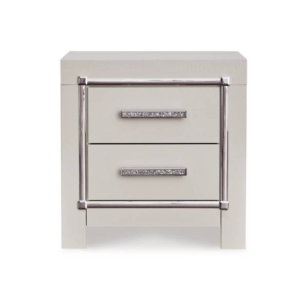 Bring home the brilliance of modern luxury with the Zyniden Two Drawer Night Stand, a dazzling addition to your bedroom décor—only from Teletime.